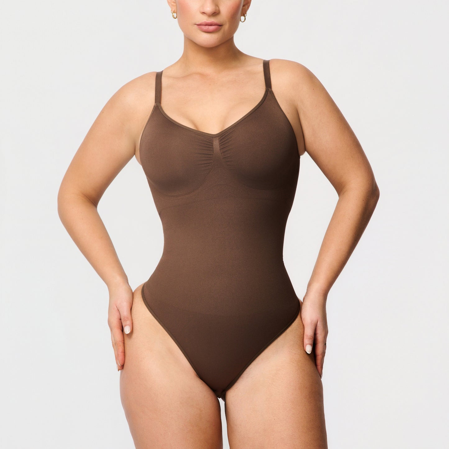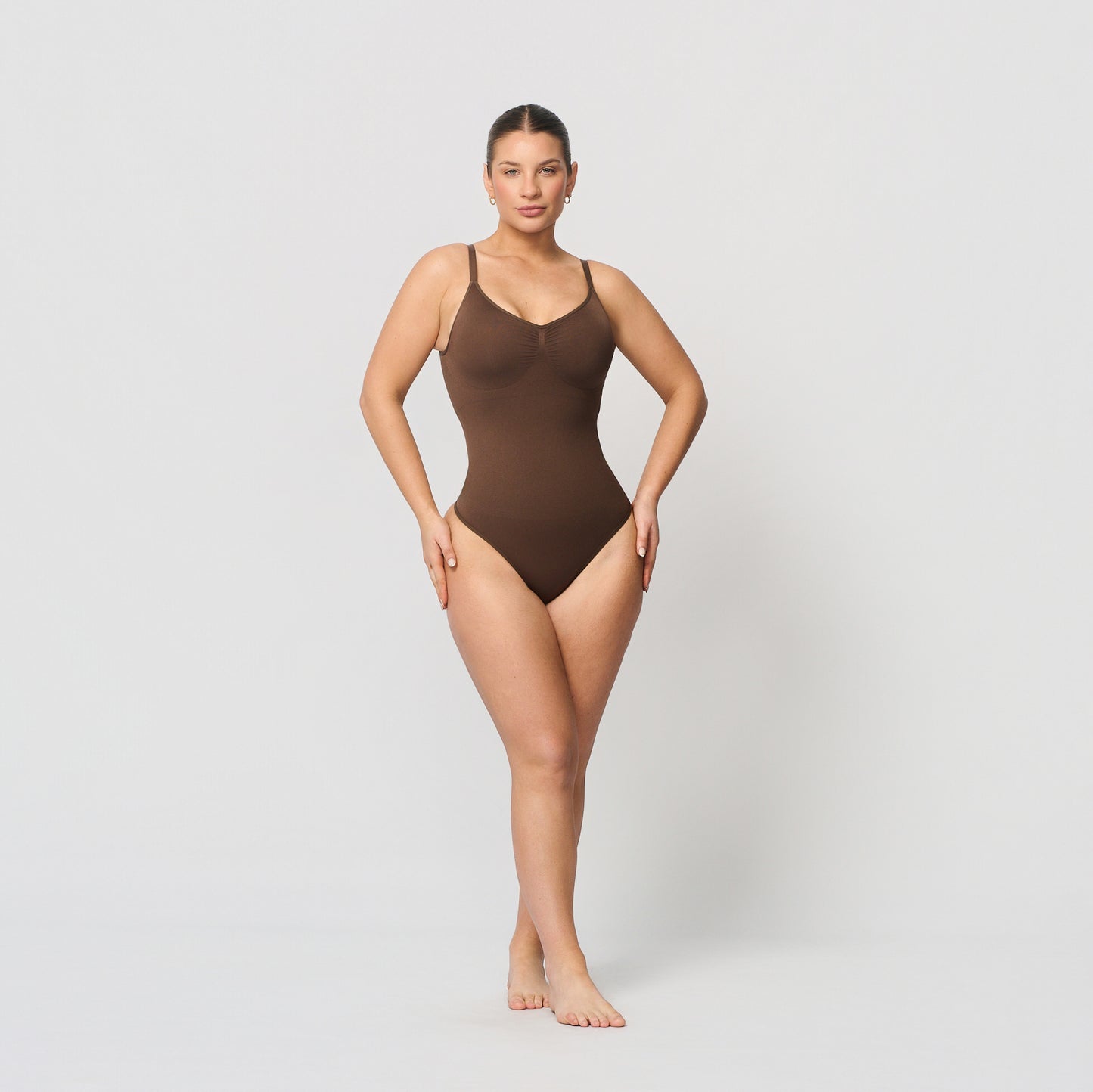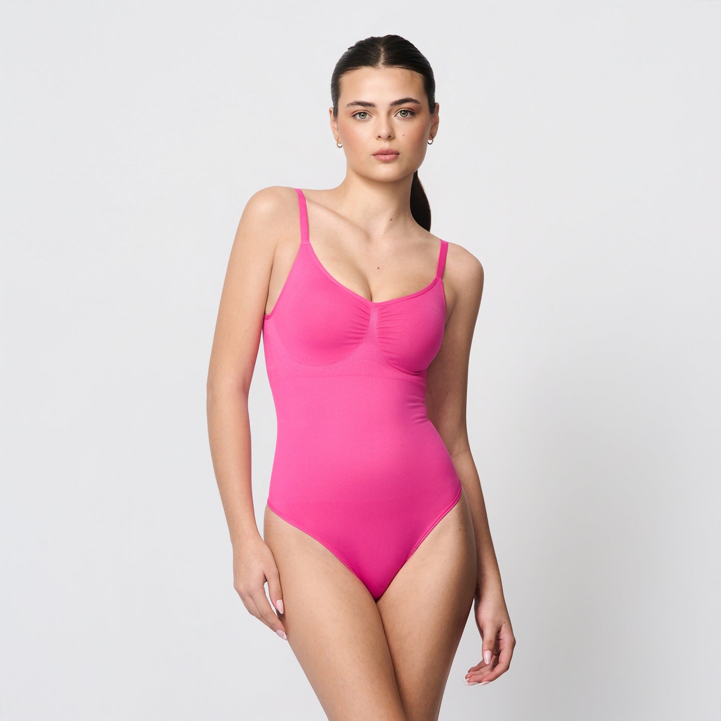 Ein formender Body, der Komfort und Halt vereint. Er verfügt über herausnehmbare Einsätze, die der Brust einen natürlichen Halt verleihen, und schmale, verstellbare Träger, die eine flexible Passform gewährleisten.